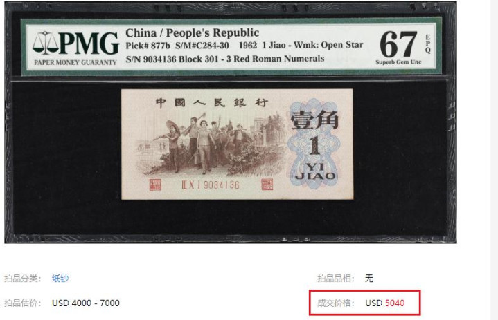 在2025年春拍中,更有一张背水1角拍出了3.67万元,堪称小面额纸币的“天花板”